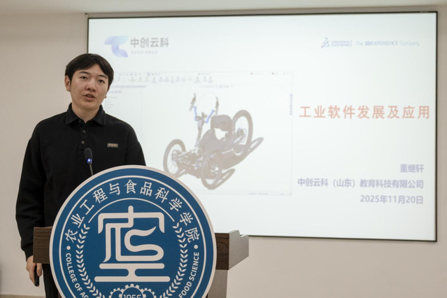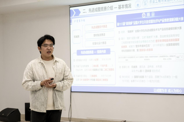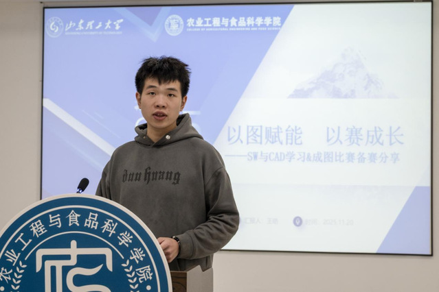 表彰大会落幕,山东理工大学第十七届大学生先进成图技术竞赛正式启动。为助力学子深化竞赛认知,提升备赛能力,大会邀请优秀学生代表能源2301班王皓和农装2201班李荣昊作分享报告,特别邀请中创云科教育科技有限公司工程师董继轩作技术交流和行业发展前景分析。