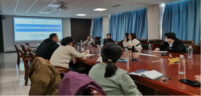 张岩老师以《电子技术系列课程数智化转型的探索与实践》为题,强调了AI赋能教育教学的时代要求,重点结合实际案例阐述了智慧课程建设的重要性及可行性。通过分享自己在课程建设中对智慧教学平台的使用,为老师们今后开展数智化课程建设提供了切实有效的方法和途径。最后张岩老师就各类型图谱建设、AI助教及过程性考核等老师们关注的问题做了进一步的解释和交流。