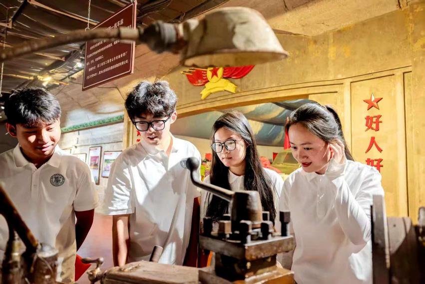 前期筹备阶段,团队与沂蒙当地对接规划研学路线,以孟良崮战役纪念馆、沂蒙革命纪念馆为核心,开展行前培训解读沂蒙精神与“红嫂”贡献,为各小组布置专项任务。研学途中,成员深入 9381 军工洞博物馆,在讲解员引导下参观生产车间、设备遗迹,聆听建设者艰苦创业的感人事迹;走访老战士收集口述历史,走进红准星科技产业园,将专业知识与乡村振兴实践相结合。