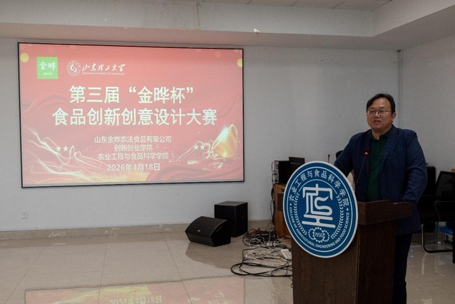 近日,第三届“金晔杯”食品创新创意设计大赛在6号楼1104会议室举办。学院党委书记高存福,山东金晔农法食品有限公司产品总监刘位刚、项目总监王泽江,学院教师代表共同出席活动。
